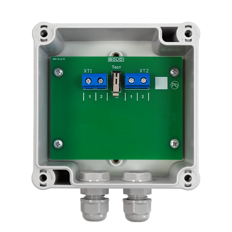 Монтажный комплект промежуточный МК10-2-П АЦДР.426477.003 предназначен для осуществления герметичного сращивания сегментов чувствительных элементов и (или) обеспечения соединения территориально разнесённых объектов защиты. Соединение между приборами МК10-2-П осуществляется с использованием одножильного огнестойкого кабеля для систем противопожарной защиты с допустимым сечением жил: 0.5, 0.75 и 1.0 мм².