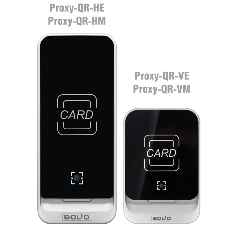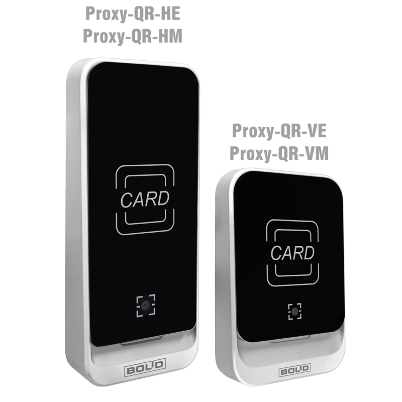 - Считыватели Proxy-QR-VM, Proxy-QR-HM работают с идентификационными картами и брелоками стандарта Mifare