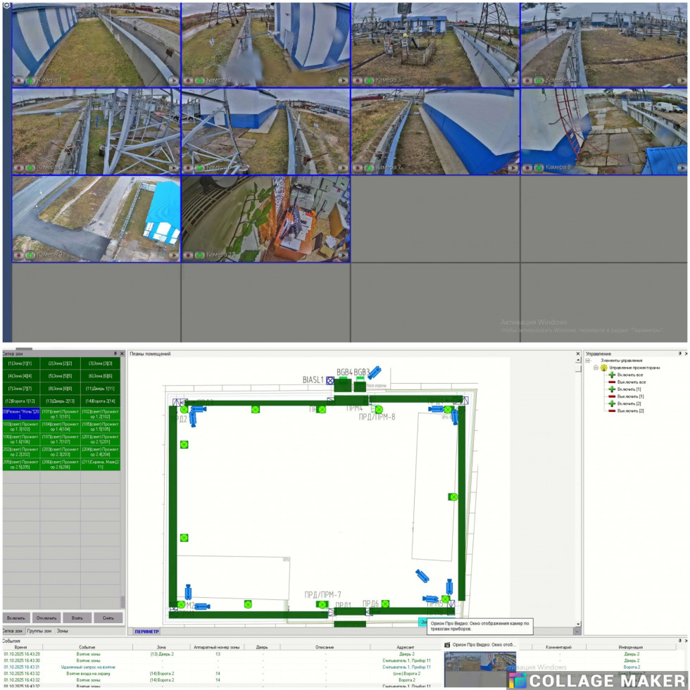 Периметральная защита выполнена с использованием комбинированных двухпозиционных извещателей Формат-50, а также радиоволновых однопозиционных извещателей Зебра-30-Ш. Освещение выполнено с помощью прожекторов "Фосфор". Интеграция через С2000-Периметр