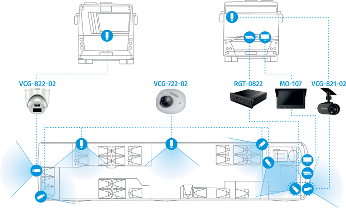 Для видеоконтроля обстановки в салоне эффективны малогабаритные видеокамеры VCG-722-02. Для обзора окружающей среды и контроля безопасности при маневрировании используется миниатюрная аналоговая видеокамера VCG-822-02. Она обладает компактными размерами, что позволяет удобно размещать ее в различных точках кузова или кабины, обеспечивая широкий обзор. Такая камера, оснащенная ИК-подсветкой и встроенным микрофоном, гарантирует качественную видеозапись и звук даже в условиях низкой освещенности, что особенно важно при ночных маневрах или плохой видимости. Камеры с разрешением 2 Мпк легко интегрируются в существующие системы транспортных средств, а монтаж осуществляется с учетом технических требований – в стратегически важных точках для максимального охвата ситуации внутри и снаружи транспорта.